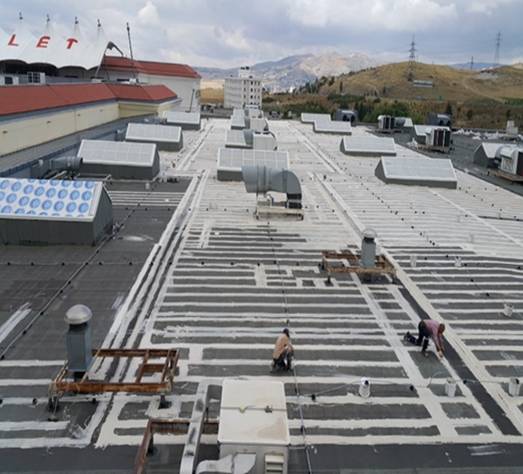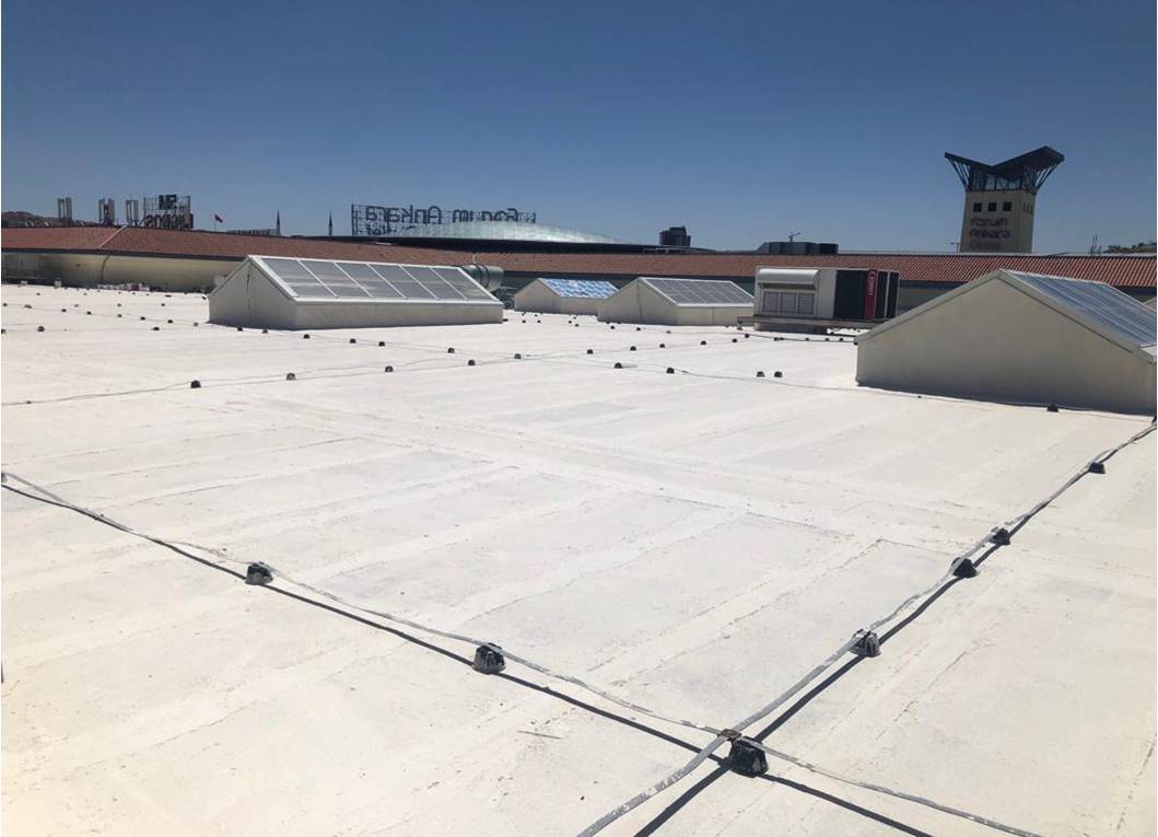 Son kat uygulamanın koruyucu özelliğinin yanında UV dayanımı ve yansıtma özelliği sayesinde ısı yalıtımı da sağlanmış oldu.