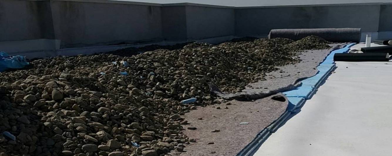 Fpo membran üzerine Isı Yalıtımı amaçlı XPS Levhalar serildi. Xps levha üzerine Geotekstil Keçe serilerek yıkanmış çakıl 6cm-10cm kalınlığında serilerek yalıtım işlemi tamamlanmış oldu.