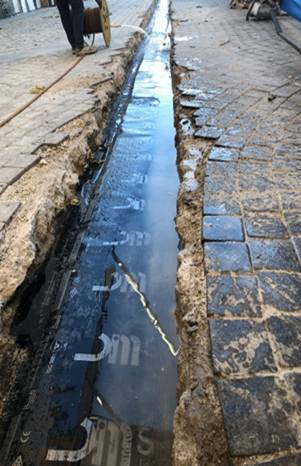 Forum ankara moda sokağında bulunan dilatasyon yalıtımı için alan çadır branda ile dışarıya kapatıldı, zemindeki taşlar söküldü, koruma betonu ve eğim betonu kaldırılarak dilatasyona ulaşıldı.