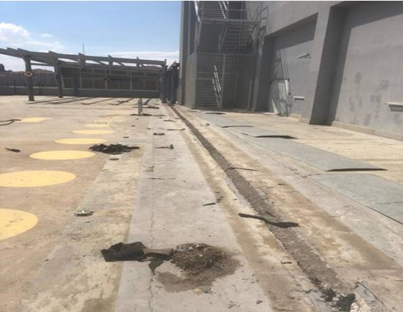 Gordıon avm 7A otoparkında bulunan dilatasyon profil kapakları kaldırıldı ve deforme olan dilatasyon bantları söküldü zemin kazınarak temizlendi.