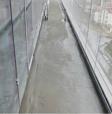 Sürme yalıtımların sonuç verebilmesi için zemin hazırlığının son derece iyi yapılması gerekmektedir. Eğim şapı atılmış yüzeylerdeki toz, kir, pas vb. maddelerden arındırıldı. Merkez dönüşlerdeki derzlere sika combiflex derz bantları çekildi.