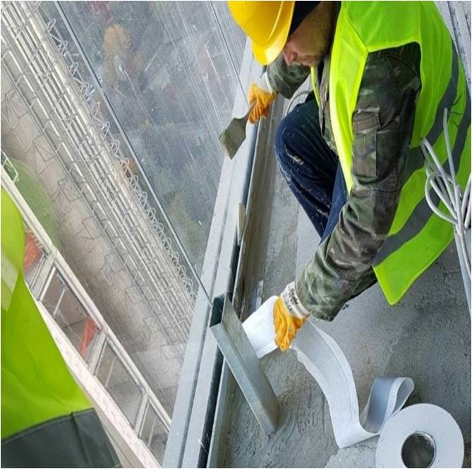 Bant uygulamalarından sonra zemin su ile nemlendirildi. Nemli yüzeye katlar arasında beklemek suretiyle iki kat halinde sürme yalıtım fırça veya rulo ile uygulanarak yalıtım işleri tamamlandı.