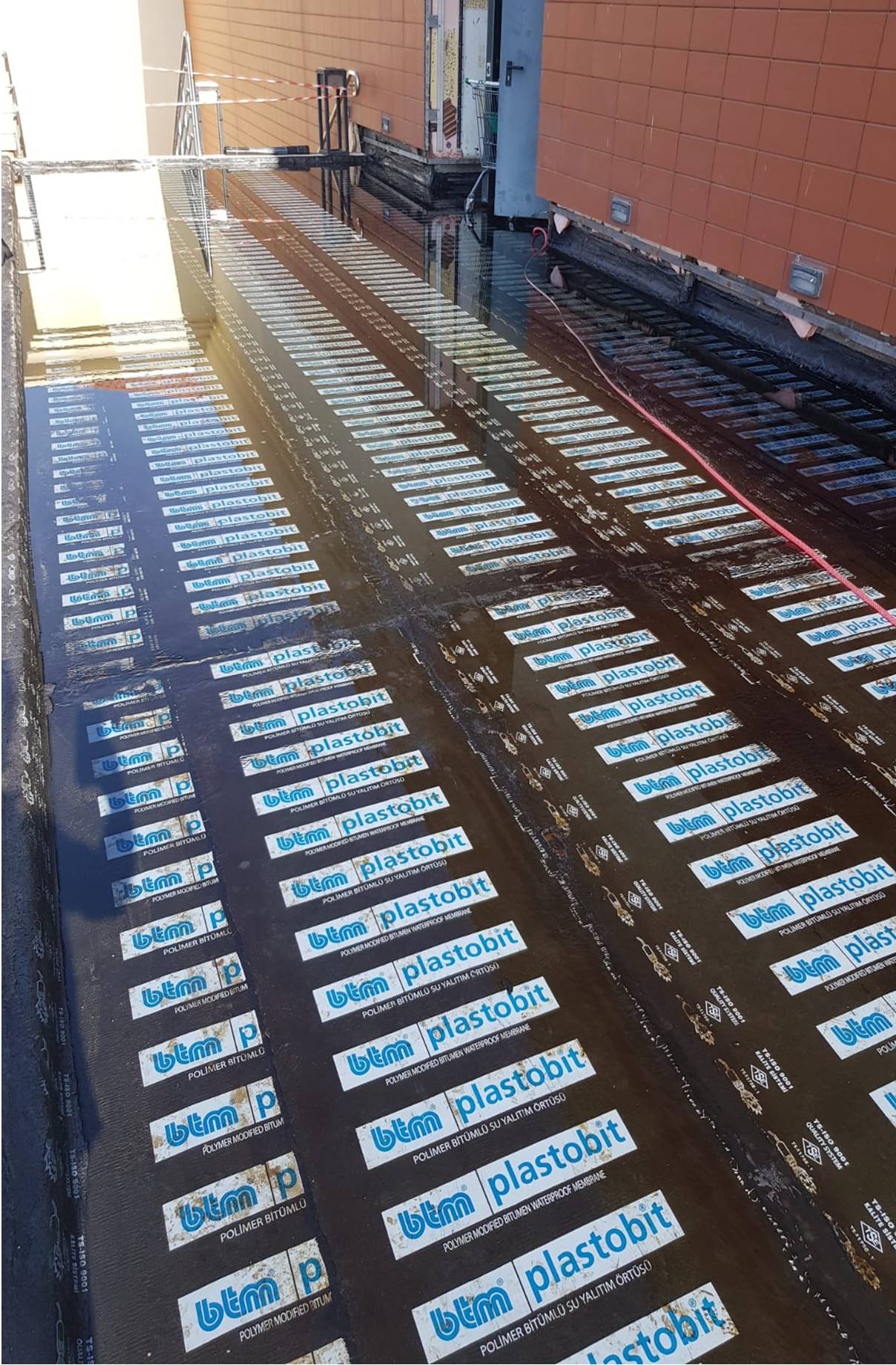 İki kat bitümex membran tam yapıştırma usulü ile yapıştırıldı. Yalıtım üzerine su doldurularak 72 saatlik su testi yapıldı.