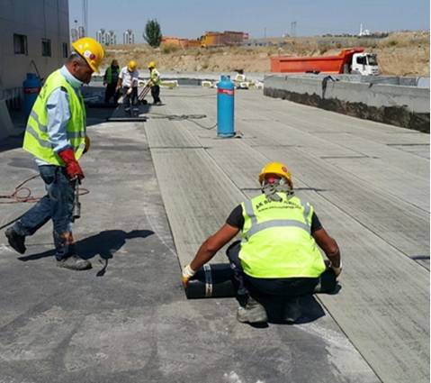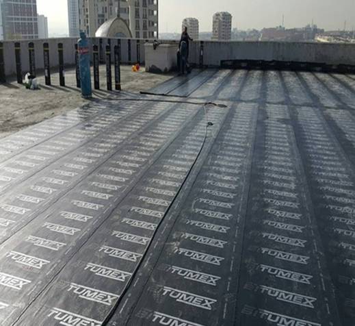 Eğim betonu atılmış teras yüzeyinde merkez dönüşlere yapısal tamir harcı ile köşe pahı yapıldı. Tüm teras yüzeyine bitüm astar sürüldü. İki kat bitümex membran tam yapıştırma usulü ile yapıştırıldı.     Yalıtım üzerine sı doldurularak 72 saatlik su testi yapıldı.