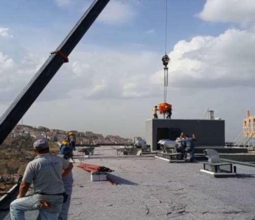 Tüm teras yüzeyine bitüm astar sürüldü. İki kat Ondulıne membran tam yapıştırma usulü ile yapıştırıldı.    Yalıtım üzerine su doldurularak 72 saatlik su testi yapıldı.