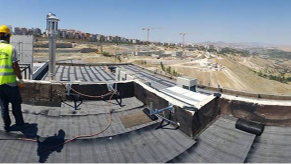 Astar sürülen teras yüzeyine bir kat 5mm kalınlığında %1000 elastikiyet oranına sahip flexobıt membran tam yapıştırma usulü ile teras yüzeyine yapıştırıldı.