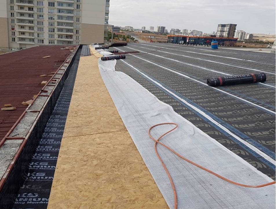 Parapet dönüşlerindeki membran bitişleri baskı profili ile sabitlenerek poliüretan mastik çekildi ve yalıtım işlemi tamamlanmış oldu