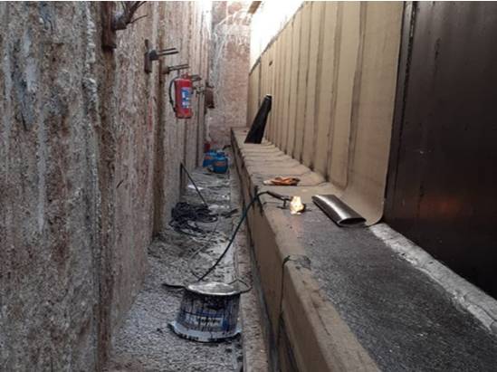 Betonarme perde yüzeyine flashing bitüm astar sürülerek kuruma süresince beklenildi. Astar üzerine bir kat soprema membran şalümo ateşi yardımıyla yapıştırılarak su yalıtımı işlemi tamamlandı. Su yalıtım membranı üzerine xps levhalar şaşırtmalı bir şekilde upim çivileri yardımıyla yerleştirildi. Xps levha üzerine 1cm boşluklu filtre katmanlı kabarcıklı drenaj koruma levhası yerleştirilerek dolguya hazır hale getirildi ve perde yalıtımı tamamlanmış oldu.
