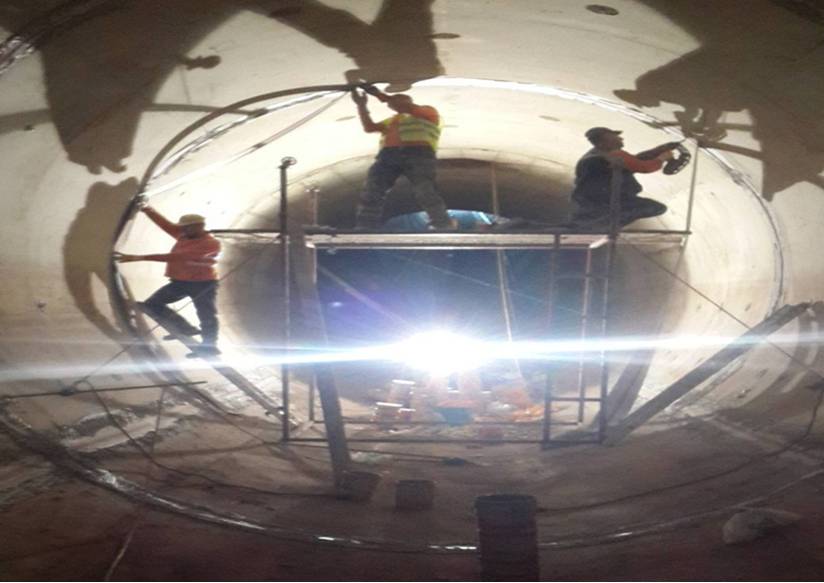 Kalıp tij delikleri matkap yardımıyla temizlendi ve poliüretan astar sürüldü, yine sika monotop 612 tamir harcı ile dolduruldu. Prizini aldıktan sonra yüzeye fileli 10cm*10cm ebatlarında Sikadur31 Epoksi Tamir Harcı ıspatula ile sürülerek tünelde bulunan yalıtım işleri tamamlanmış oldu.