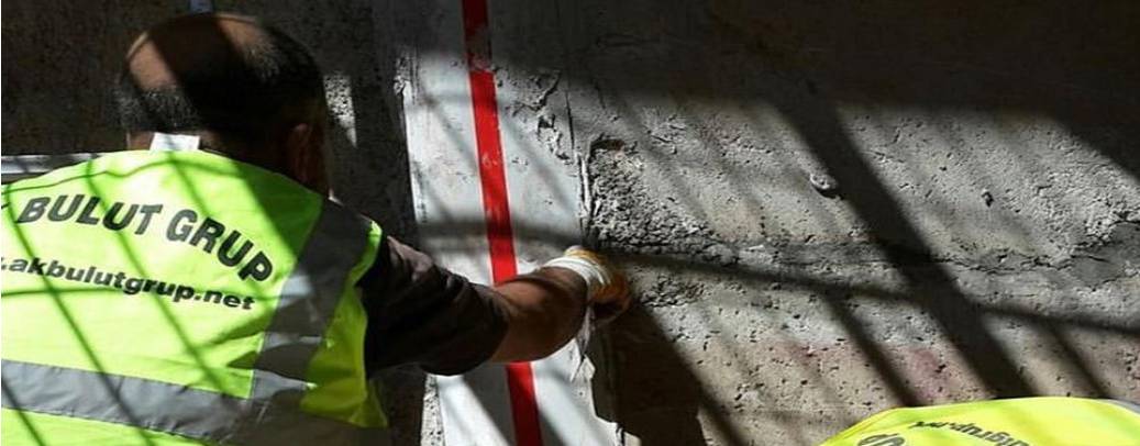 Derz üzerinde çalışma yapabilmek için firmamız tarafından burası için özel tasarlanmış iskele yaptırıldı, Derz birleşimleri beton silim makinesi ile silinerek temizlendi, yüzeyde bulunan ince toz tabakası bertaraf edildikten sonra yüzeye en az C55 beton özelliğinde olan Sikadur31 Epoksi Tamir harcı sürülerek Sika Combiflex Bant uygulaması yapılarak derz yalıtımı tamamlanmış oldu.